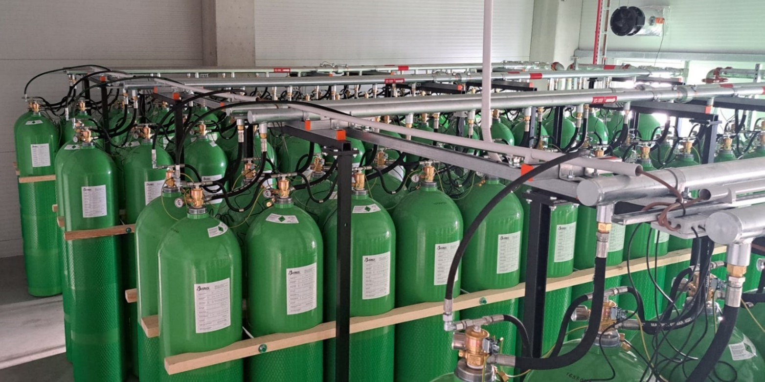 Inertní plyny jsou uskladněny ve formě stlačených plynů v tlakové láhvi standardně pod tlakem 300 bar.